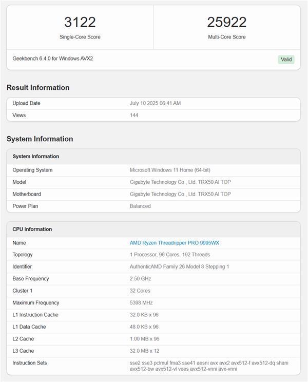 需要指出的是,GeekBench 6对于8-32核心处理器的多核支持非常好,自然对苹果非常有利,AMD 96核心这种反而很难发挥出全部实力。